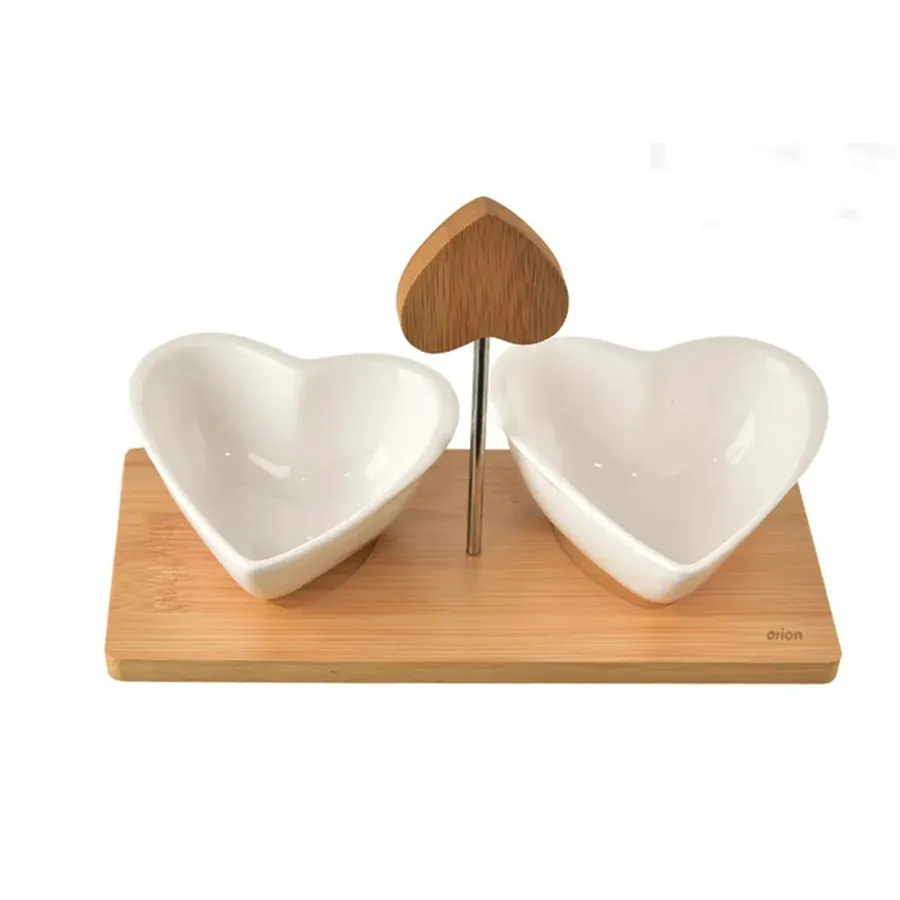 You can use the serving set of two heart-shaped bowls on a tray for serving.