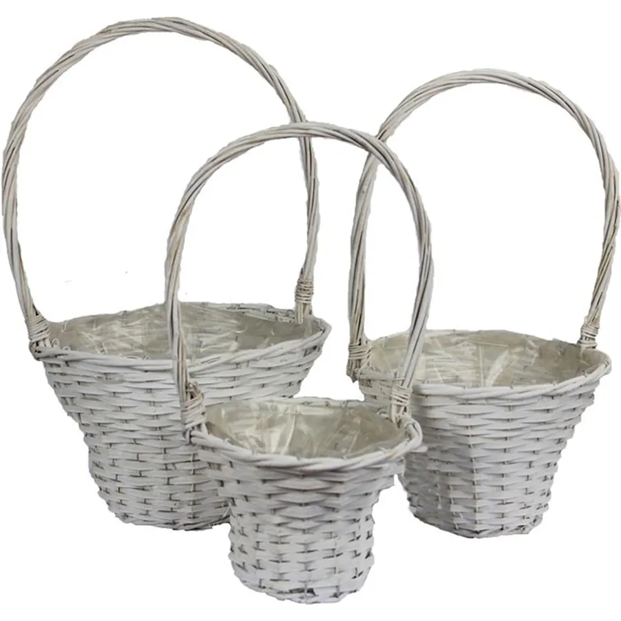 Set of 3 Pcs. Size of the baskets: Small: dia 20 cm. The height with handle is 43 cm (without 15 cm). Medium: dia 25 cm. The height with handle is 46 cm (without 17 cm). Large: dia 30 cm. The height with handle is 50 cm (without 19 cm). Dimensions: Please note all dimensions are approximate, the baskets are all handmade and therefore unique. The dimensions given are an indication of the approximate size, also the color may little vary slightly. Variance of size +-2 cm.