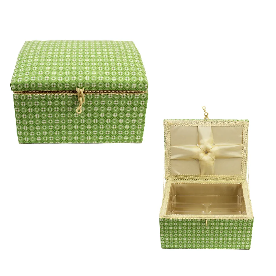 Sewing box. Size: 21 x 16 cm, height 12 cm Material: fabric Included is practical removable transparent plastic tray.