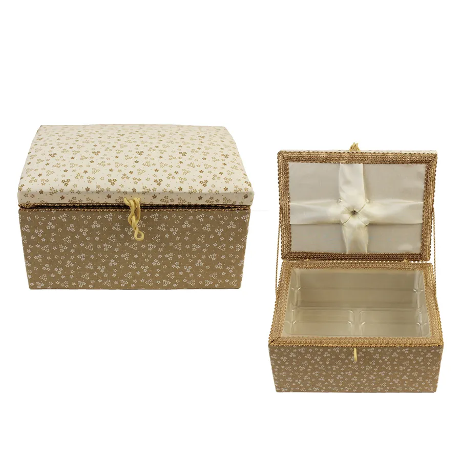 Sewing box. Size: 21 x 16 cm, height 12 cm Material: fabric Included is practical removable transparent plastic tray.