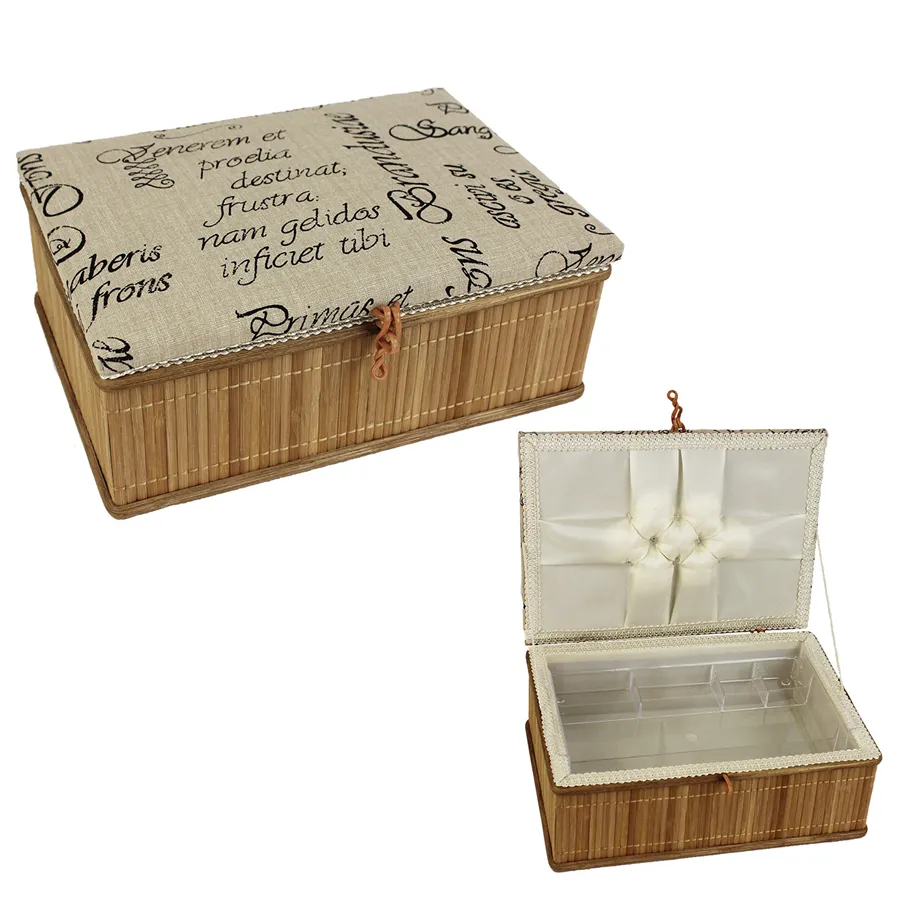 Sewing box with plastic partition. Size: 27 x 19 cm, height 12 cm Material: bamboo