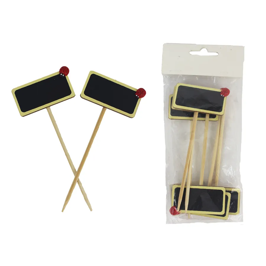 A set of labeling engravings with a ladybug. The set contains 6 notches. The recesses are 6 cm wide, 0.4 cm thick, 3 cm high, total recess height 14 cm. Color: combination of black and natural. Wood-based material.