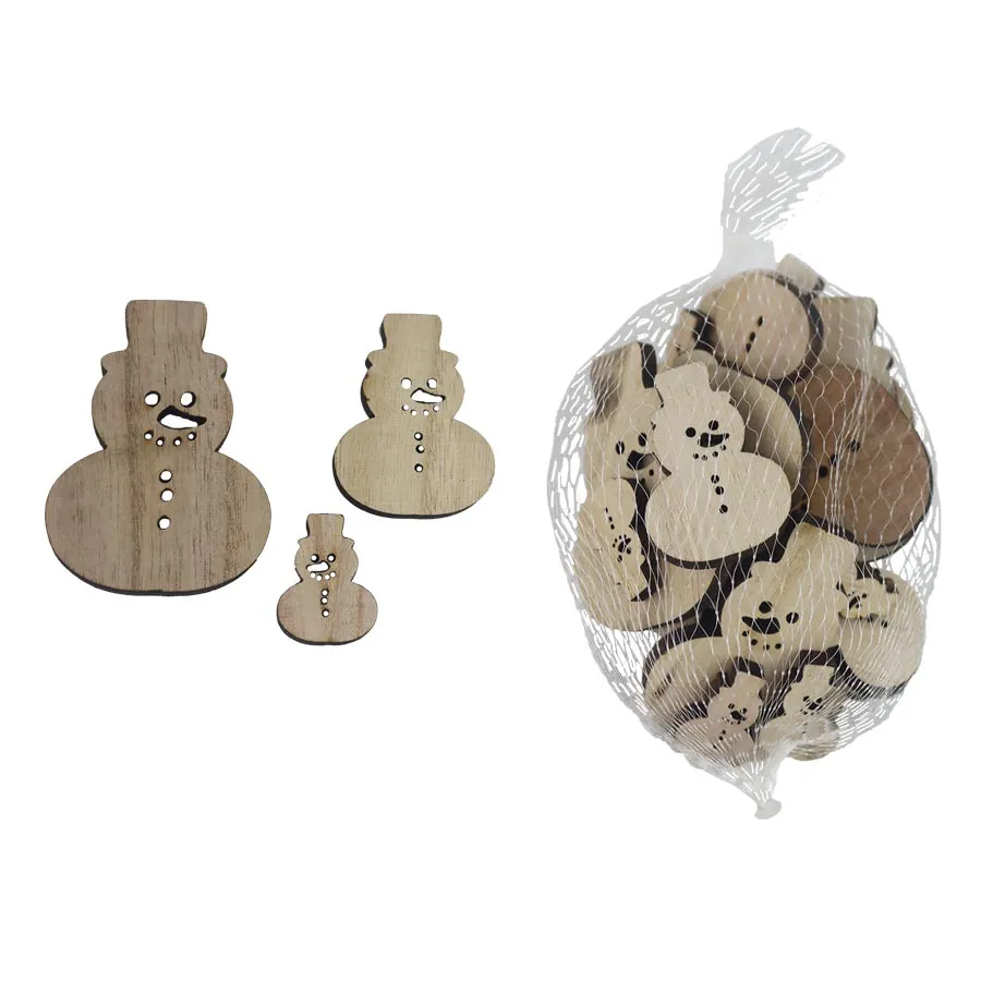 Set of decorative snowmen. The set contains 30 snowmen in three sizes. Dimensions: Color: natural. Wood-based material.