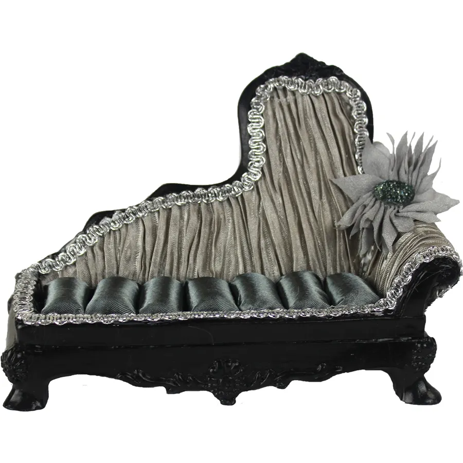 Sofa for jewelry with flower. Sofa is packed in a plastic box.