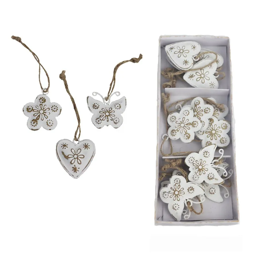 Set of spring decorations to hang. The set contains 12 decorations. Dimensions: 4 - 4.5 x 1 cm, height 4 - 4.5 cm.