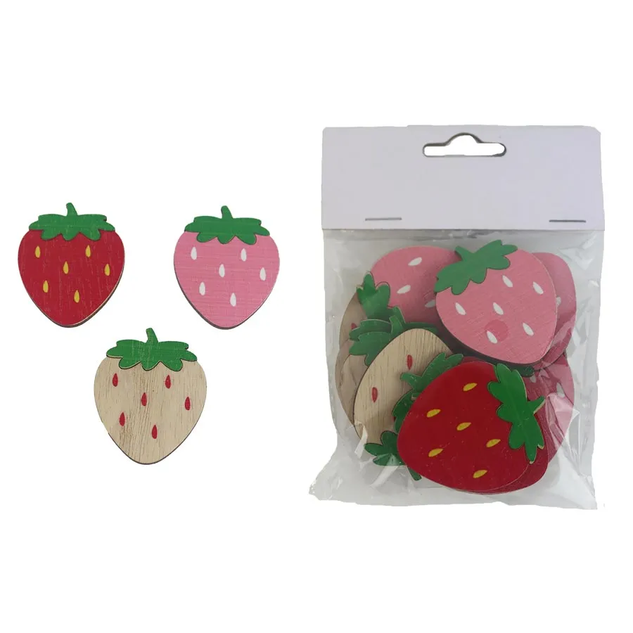 Set of wooden spring decorations with strawberry glue. The set contains 12 decorations.