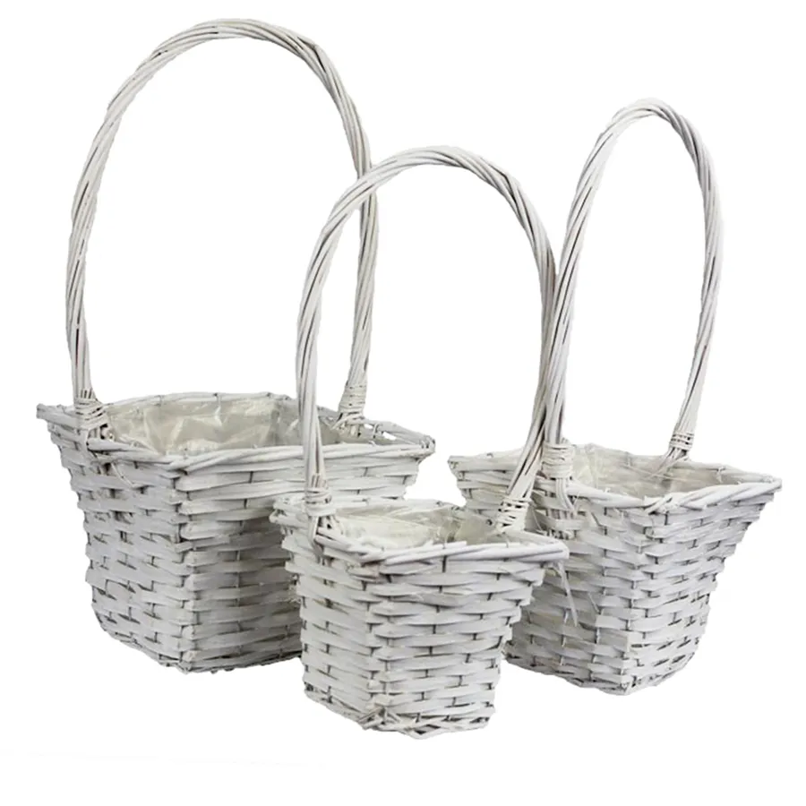 Set of 3 pcs. Sizes of baskets: Small: 17 x 17 cm, the heigth with handle is 43 cm (without 14 cm). Medium: 21 x 21 cm, the heigth with handle is 46 cm (without 17 cm). Large: 25 x 25 cm, the height with handle is 50 cm (without 19 cm). Dimensions: Please note all dimensions are approximate, the baskets are all handmade and therefore unique. The dimensions given are an indication of the approximate size, also the color may little vary slightly. Variance of size +-2 cm.