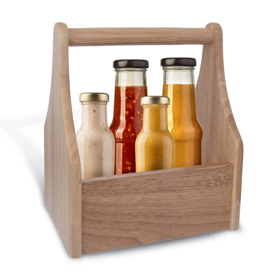 Wooden root stand.The stand for seasonings and spices will be useful for grilling, but also at home in the kitchen for ordinary cooking. You can easily carry your favorite spices, ketchup and sauces, serve them to the table and then put them back in your place.Dimensions: 19 x 13 cm, height 23.5 cm.Color: natural.Material: rubber tree wood.