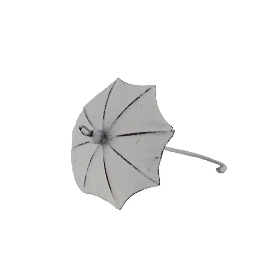 Decorative umbrella. Dimensions: diameter 9 cm, height 12.5 cm. White color. Material: metal.