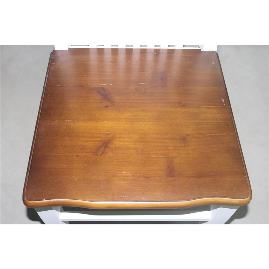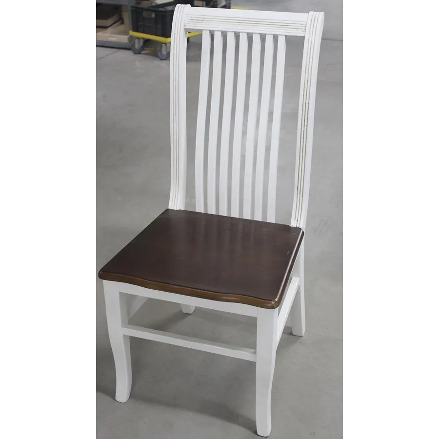 A tasteful wooden chair in the Provençal style. The advantage is the original appearance and massive design. The chairs are in 2nd quality. They have knots in places, they are scratched, the white supports are not pure white, see additional photo. Do not expose to direct sunlight or rain.