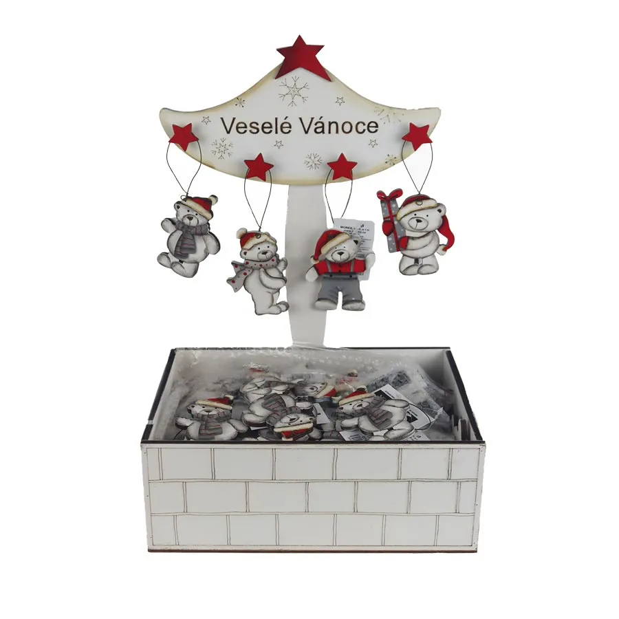 Wooden ornaments for the tree in a box. The box contains 72 teddy bears, 4 types of teddy bears.