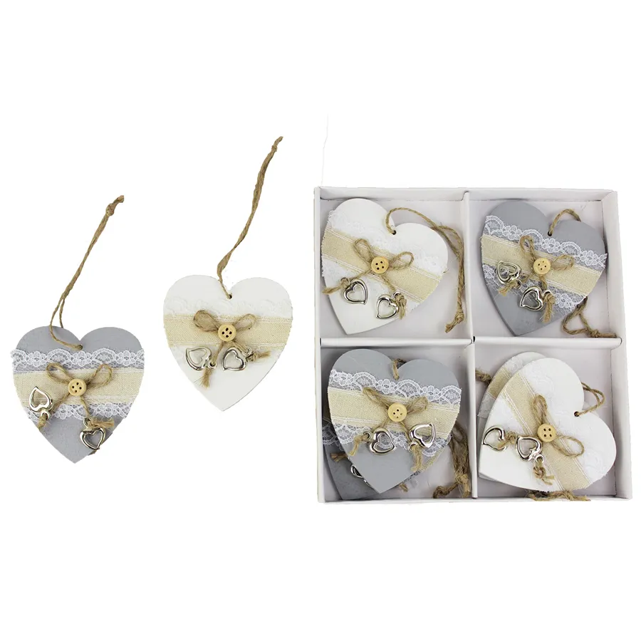 Set - decoration heart. Contains 8 pcs. - 4 white, 4 grey