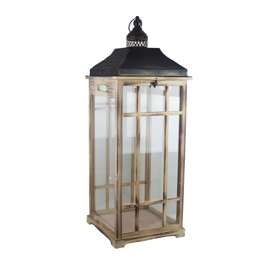 Bring the charm of oriental style into your home or garden. This lantern is made of wood and glass panels, the upper part is made of metal. The lantern has a handy handle to make it easy to carry it between your home and garden.