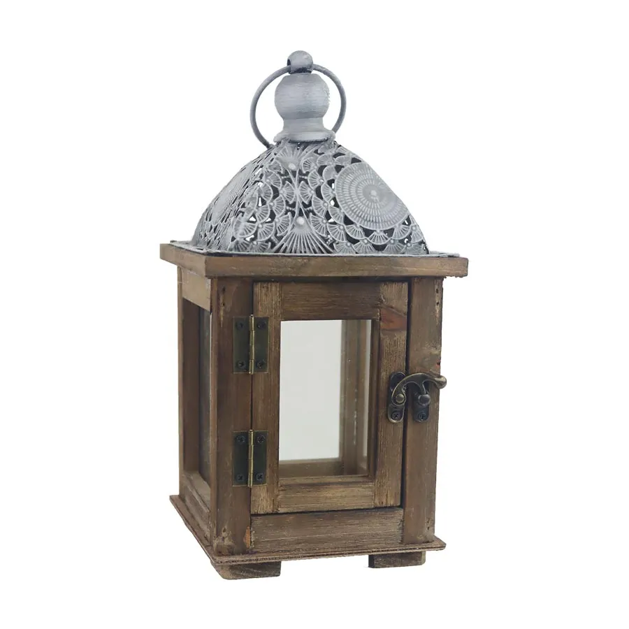 Bring the charm of oriental style into your home or garden. This lantern is made of wood and glass panels, the upper part is made of metal. The lantern has a practical handle that will make it easier for you to carry it between the house and the garden.