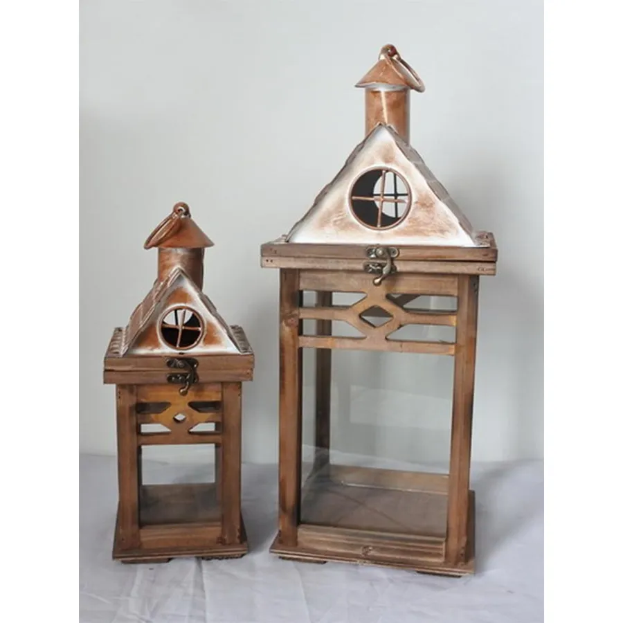 Wooden lantern. Bring the magic of oriental style to your home or garden. These lanterns are made of wood and glass panels, the upper part is made of metal. The lanterns have a practical handle that makes it easier for you to carry them between the house and the garden.