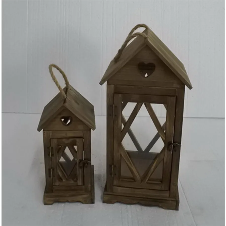 A set of wooden decorative lanterns. The set includes 2 lanterns of two sizes. The small lantern has dimensions: 14 × 13.5 cm, height 29.5 cm. The large lantern has dimensions: 21.5 × 20 cm, height 44 cm.