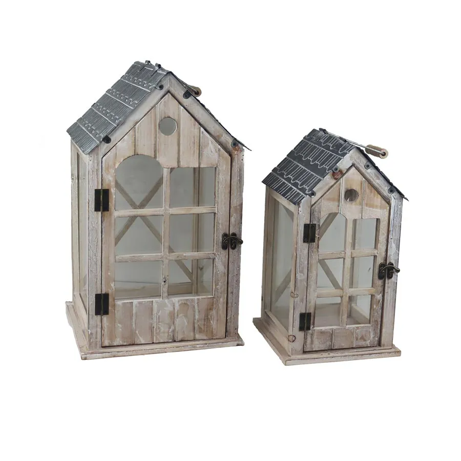 Set of wooden lanterns. The set includes 2 lanterns of two sizes. The small lantern has dimensions: 18 x 18.5 cm, height 34 cm, total height with ear 42 cm. The large lantern has dimensions: 25 x 25.5 cm, height 44 cm, total height with handle 53 cm. Bring the charm of oriental style into your home or garden. These lanterns are made of wood and glass panels, the upper part is made of metal. The lanterns have a practical handle that makes it easier for you to carry them between the house and the garden.