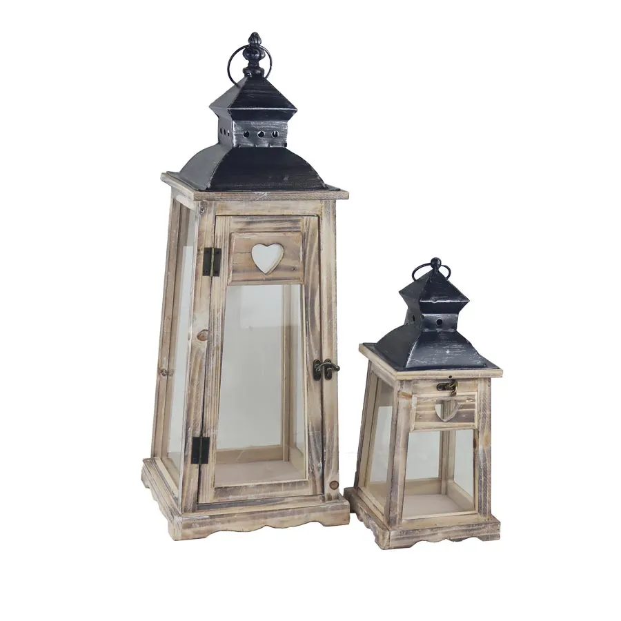 Wooden lantern, S/2 D7217