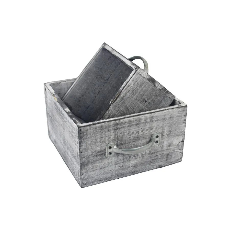 Wooden planter, 2pcs D3528/S2