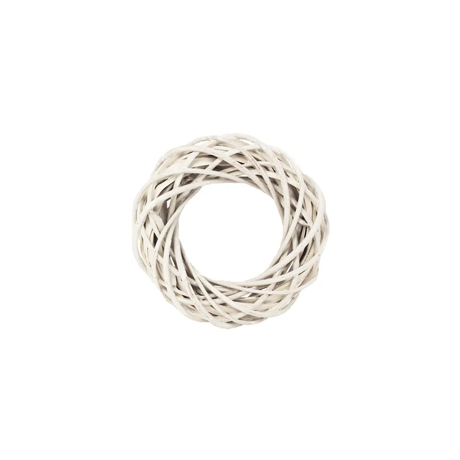 Beautiful wreath. Size: dia 15 cm, thickness 4,5 cm Color: white Material: wicker