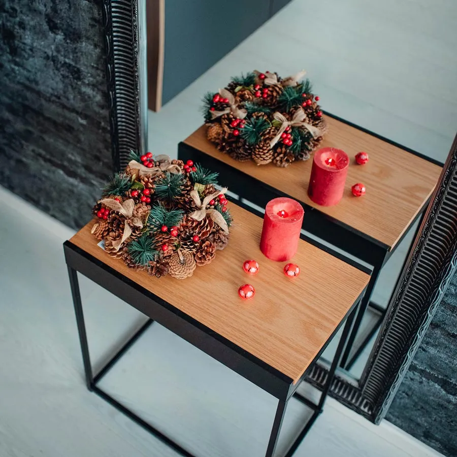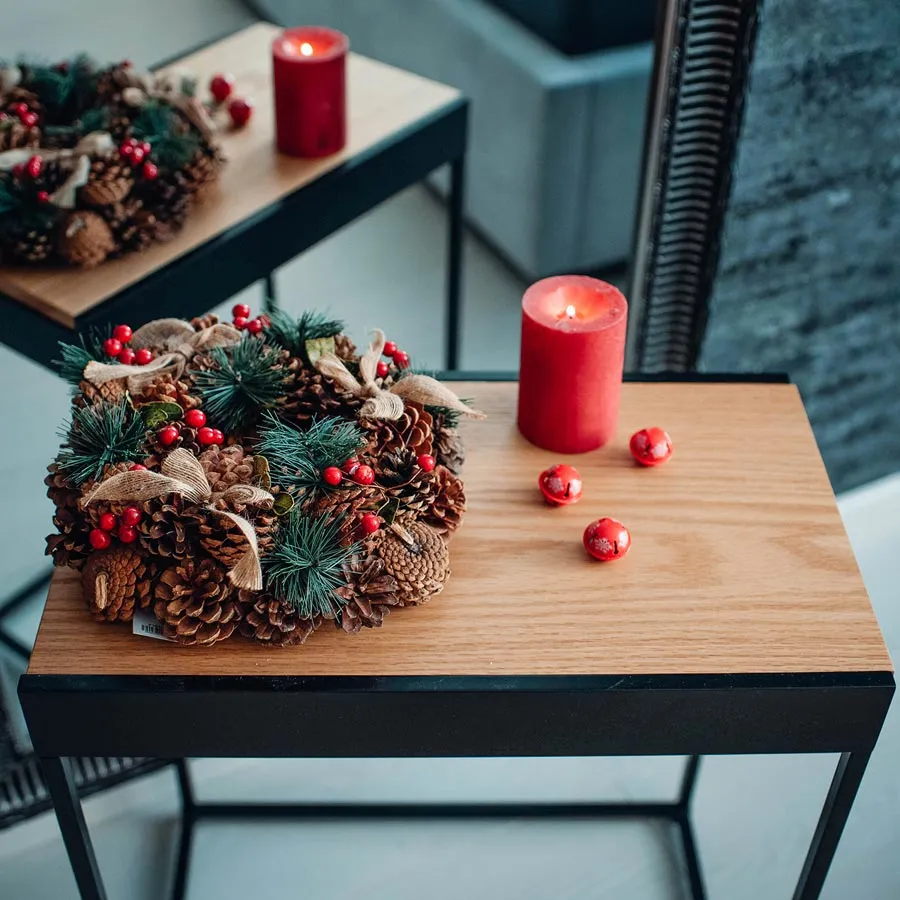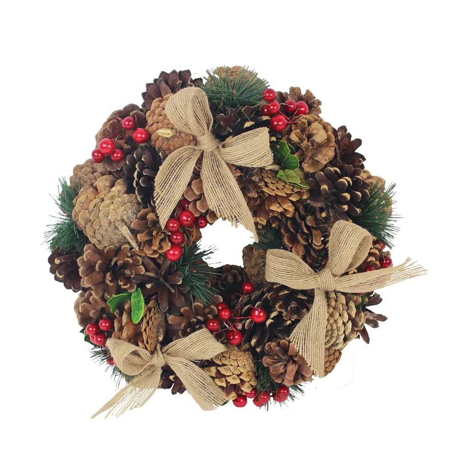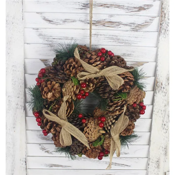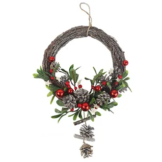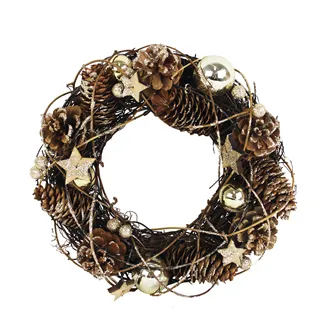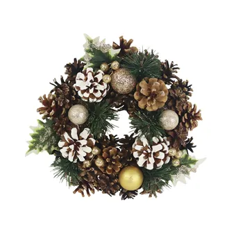 Beautiful decorated small Christmas wreath.Dimensions: diameter 25 cm, thickness 8 cm.Color : brown.Material: decoration, wire, jute.